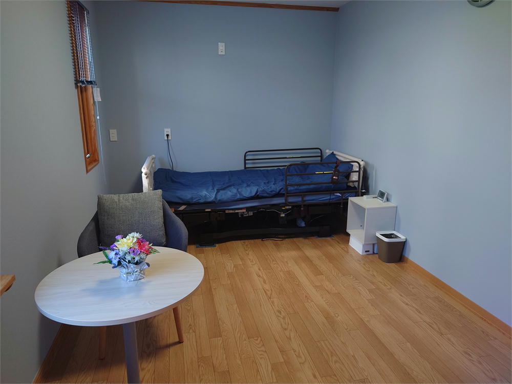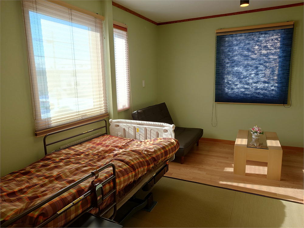 お部屋の名前は全て「星」という意味で、各部屋それぞれ雰囲気が異なるデザイン。全室に電動介護ベッドと、エアコン、フロントコール、テレビ、椅子、テーブルを完備。自分のお部屋のようにゆっくりおくつろぎ頂けます。全てのお部屋がシングルルームです。